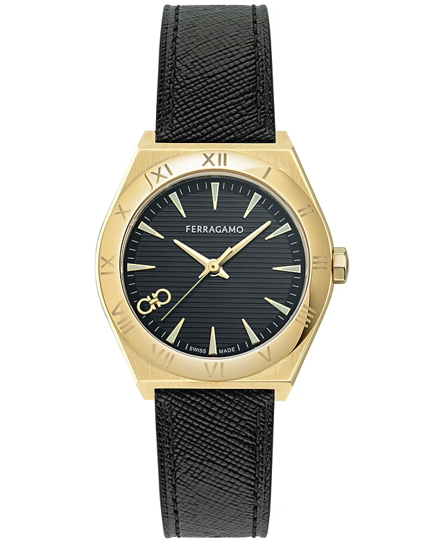 Ferragamo Women's Swiss Vega Black Leather Strap Watch 35mm