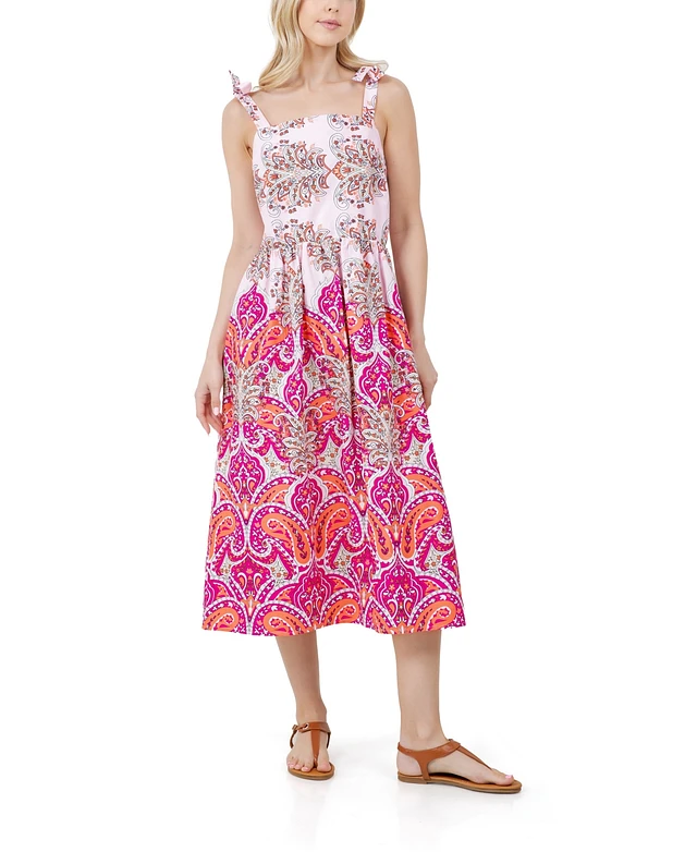 Msk Women's Cotton Pleated-Bodice Tie-Back Midi Dress