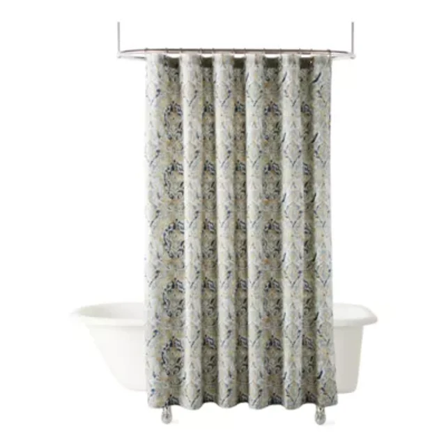 Fieldcrest Silver Gray Damask Scroll Shower Curtain