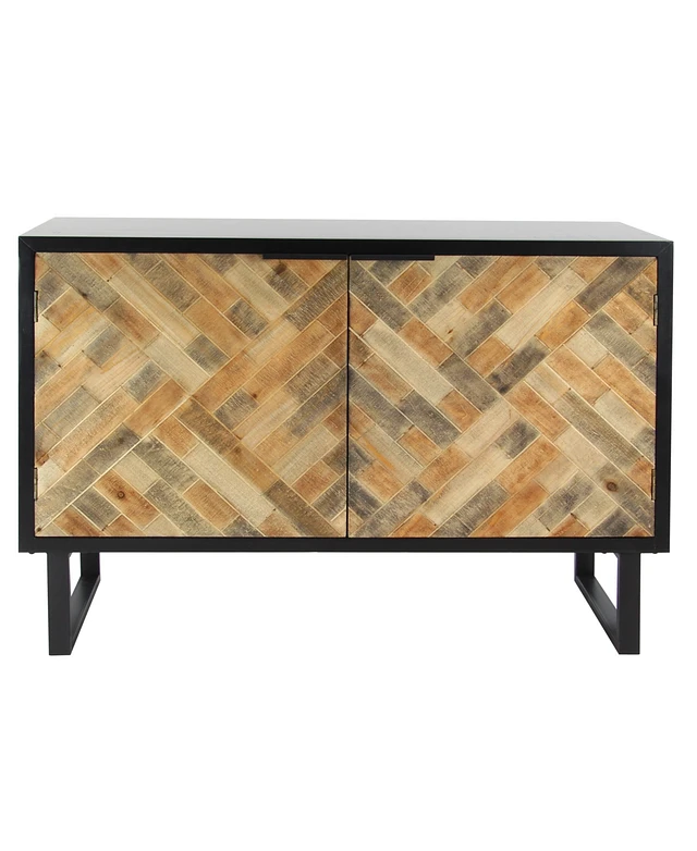 Lovmor Handmade Fir Wood Shutter Accent Cabinet Rustic Walnut Sideboard Storage Buffet