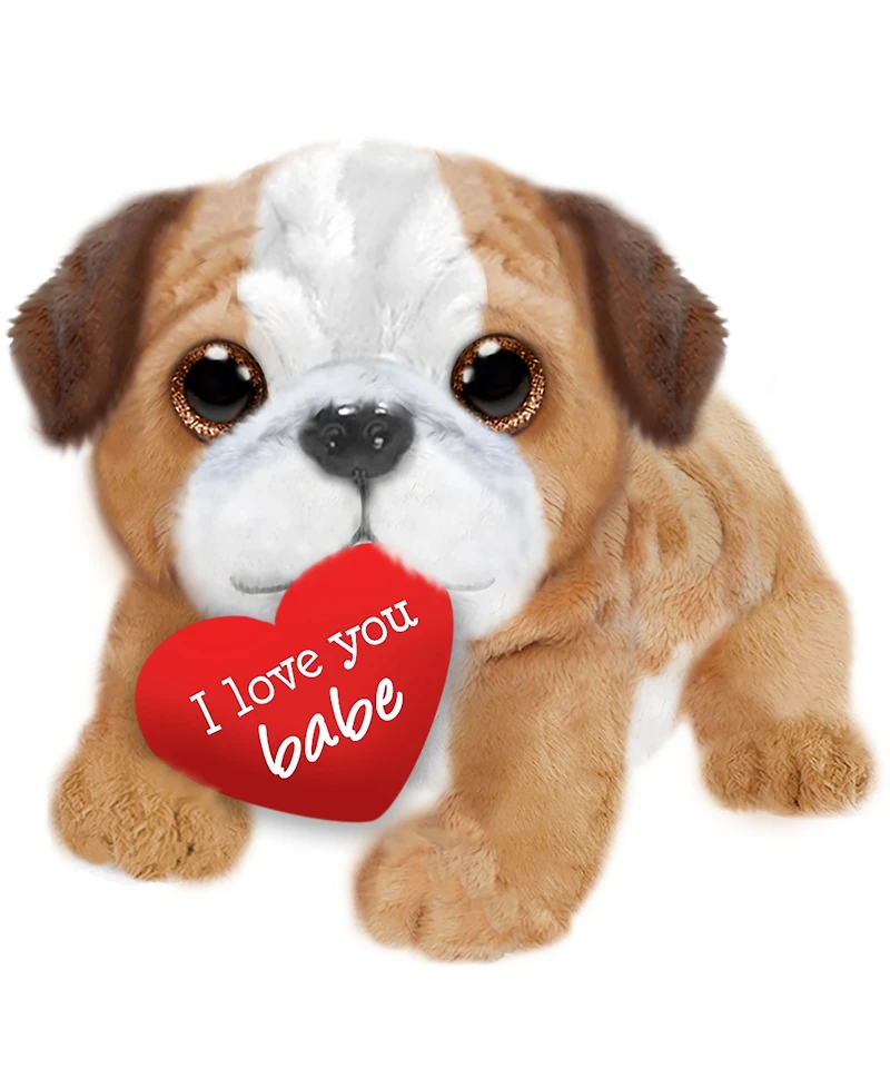 Adorable plush pup Bruno is the sweetest dog you will see this season. His gorgeous sparkling eyes and cute button nose make you just want to take him home with you. In his mouth, he holds a plush heart.