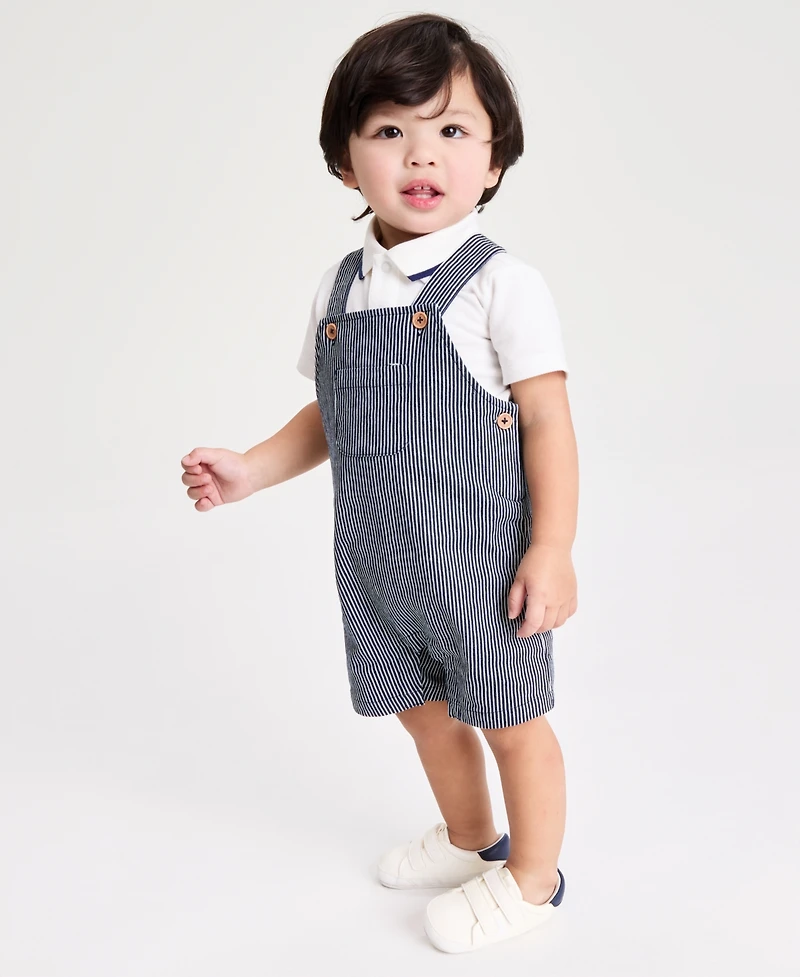 First Impressions Baby Boys Polo Shirt & Striped Shortall, 2 Piece Set, Exclusively at Macy's