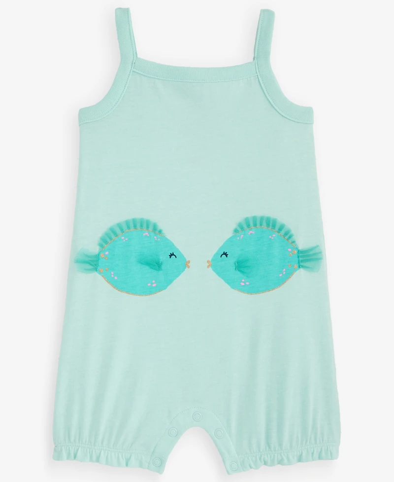 Two little fish and sweet tulle accents add fun style to this comfy one-piece sunsuit from First Impressions.