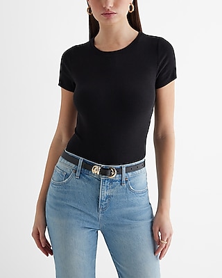 Ribbed Crew Neck Short Sleeve Bodysuit
