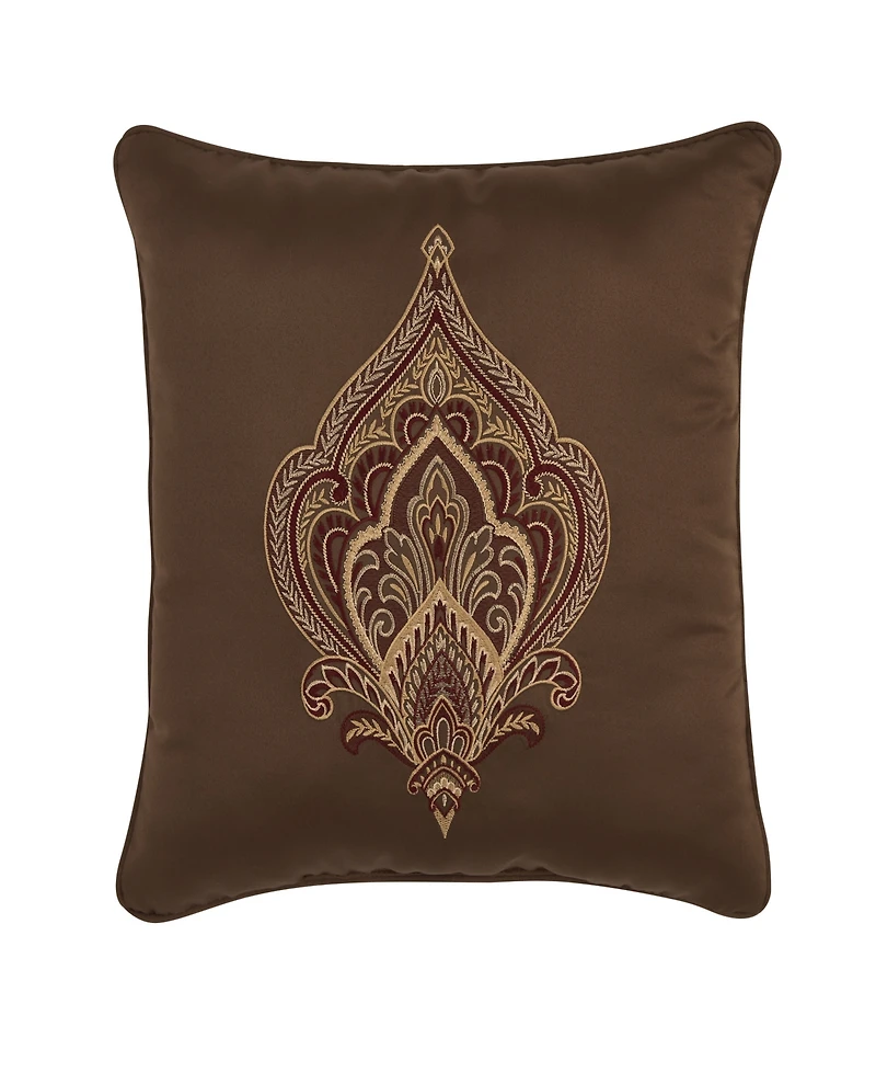 The Odette 18"" Decorative Pillow features a timeless embroidered damask design on a soft chocolate brown fabric. A dyed to match self-fabric piping finishes the lofty Pillow. This luxurious accent pillow is recommended to add as the finishing touch to the Odette bedding set.