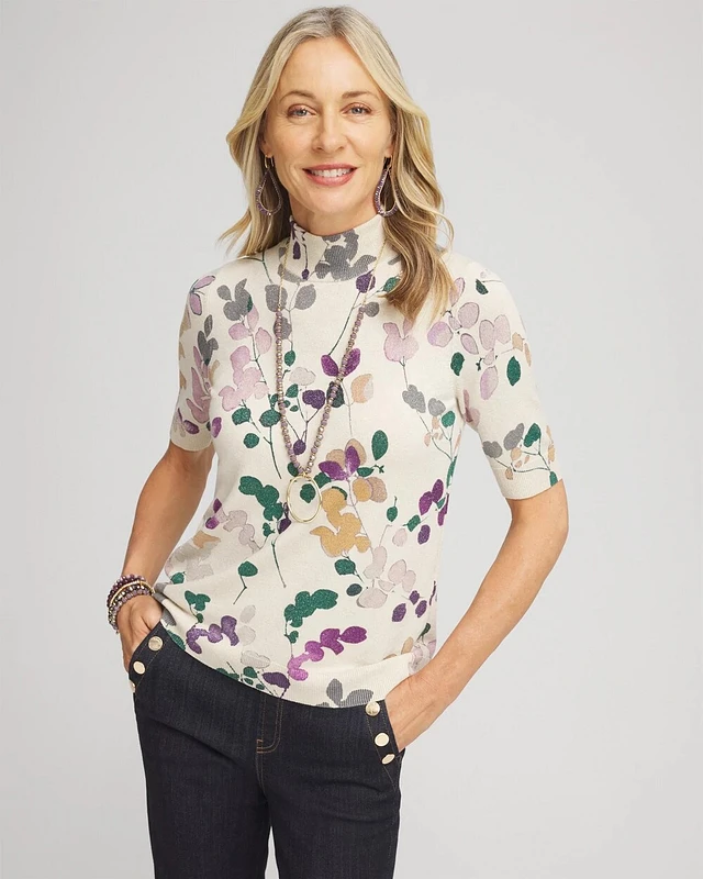 Floral Elbow Sleeve Mock Neck Sweater