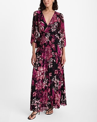 Floral V-Neck Pleated Maxi Dress