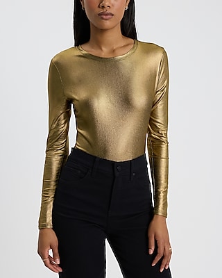 Metallic Gold Mesh Long Sleeve Bodysuit