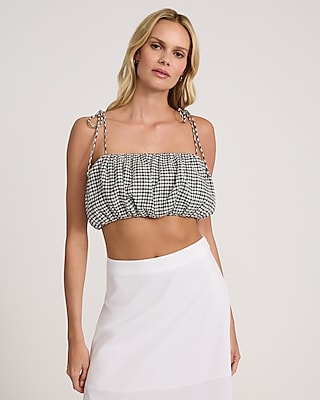 Linen-Blend V-Neck Tie Front Peplum Tank