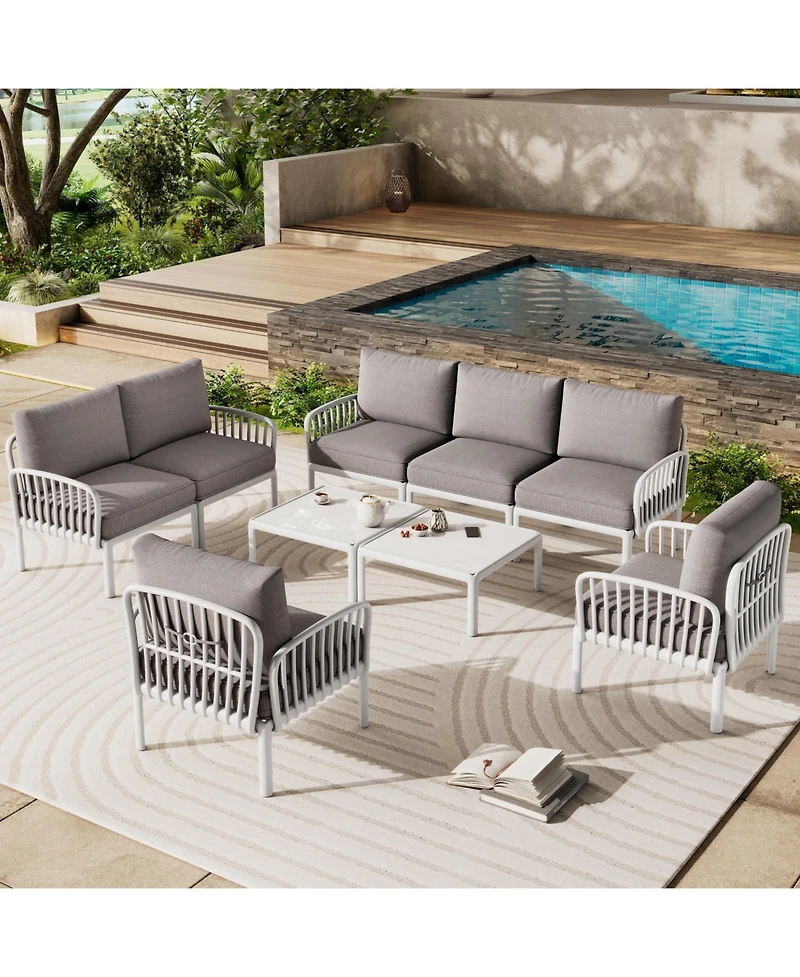 Flynama 9 Piece Modern Outdoor Patio Sectional Conversation Set with Two Square Coffee Tables Waterproof Thick Cushions in Ponce, PR