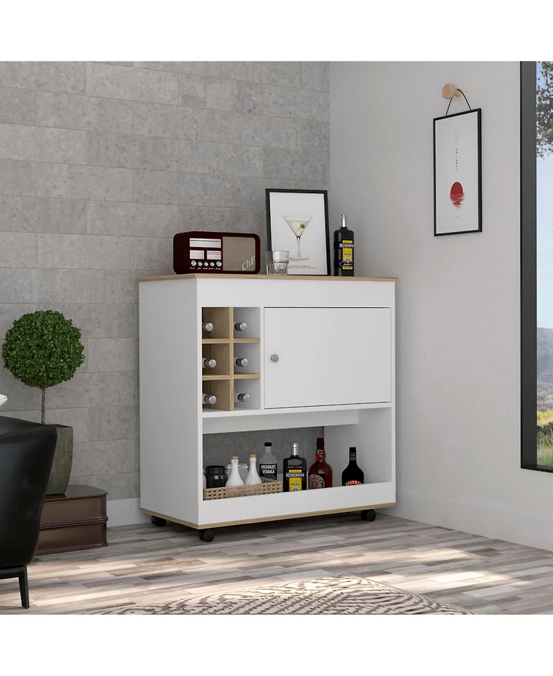 Flynama Light Oak Bar Cart with Lower Panel, 6 Bottle Cubbies and 1 Cabinet in Ponce, PR