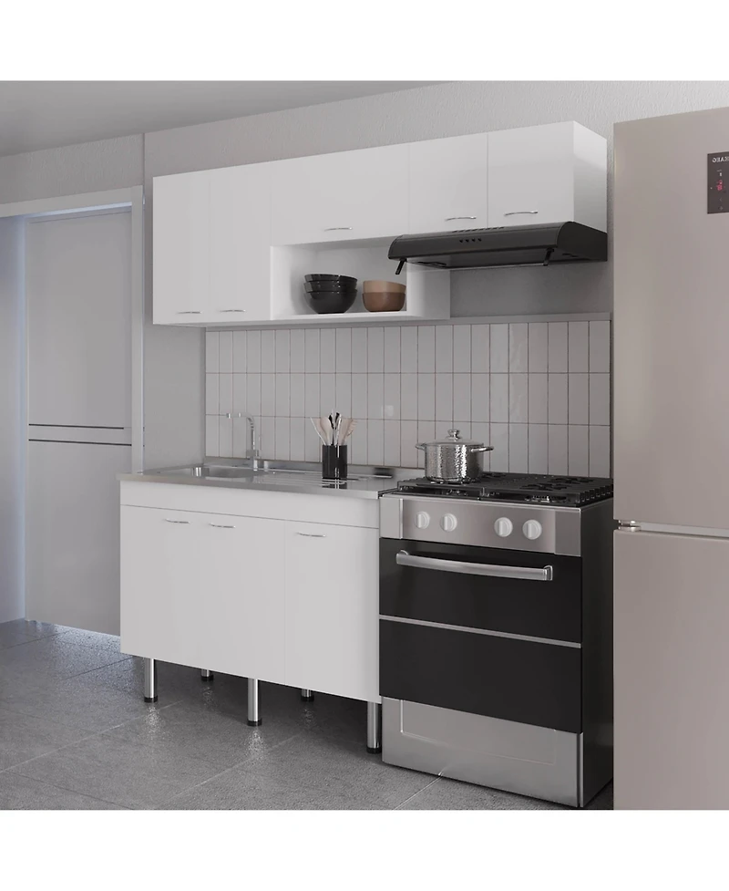 El Capitan Modular KitchenTransform your kitchen with El Capitan, a modular set that combines functionality and modern design. The base cabinet (36.7” H x 47.2” W x 20.5” D) offers ample storage for kitchen essentials, while the upper cabinets (23.6” H x 70.9” W x 11.8” D) provide easy access to utensils and decor. Featuring an easy to maintain countertop, this set maximizes workspace and efficiency. Perfect for all home types, El Capitan adds both style and practical storage solutions to your kitchen.