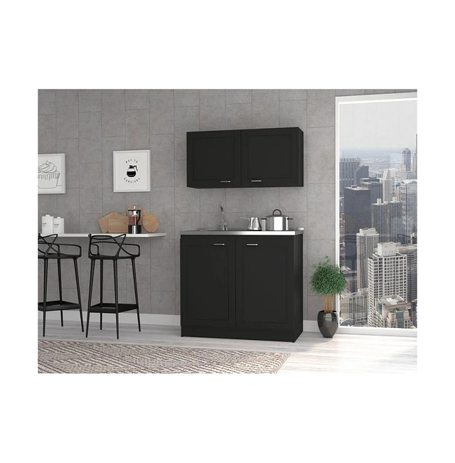 Fm Furniture Seattle Bar Cabinet, Eight Bottle Cubbies, Two Large Open Shelves