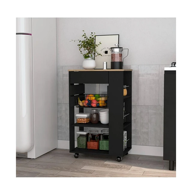 Fm Furniture Ace Bar Cart, Twelve Built-in Wine Rack, Casters, Drawer