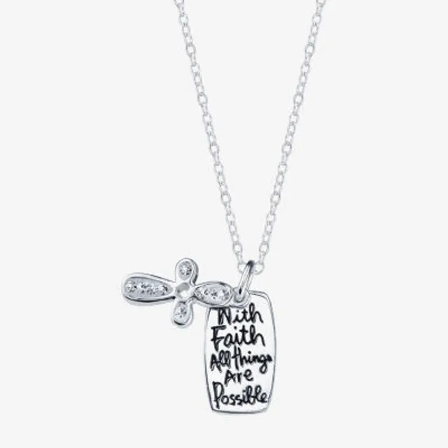 Faith" Womens Accent Natural Diamond Sterling SIlver Cross Pendant Necklace"