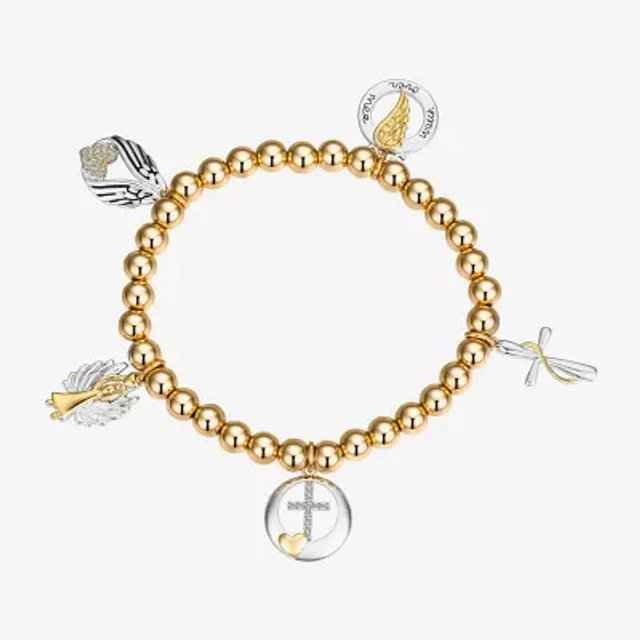Footnotes Faith Womens Cubic Zirconia 14K Gold Over Brass Pure Silver Over Brass Angel Cross Wing Charm Bracelet