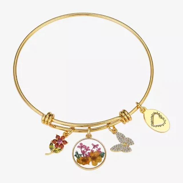 Footnotes Hope Pressed Flowers Womens Purple Cubic Zirconia 14K Gold Over Brass Pure Silver Over Brass Butterfly Bangle Bracelet