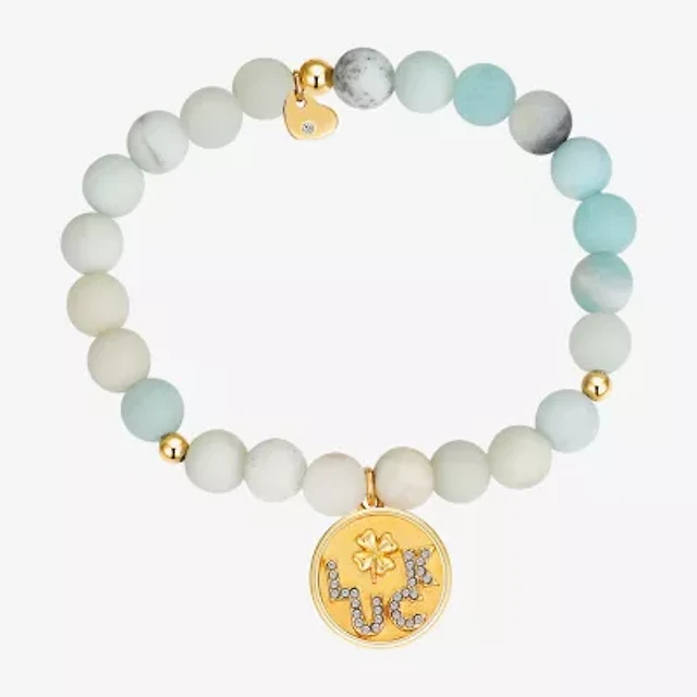 Footnotes Luck Womens Cubic Zirconia 14K Gold Over Brass Clover Stretch Bracelet