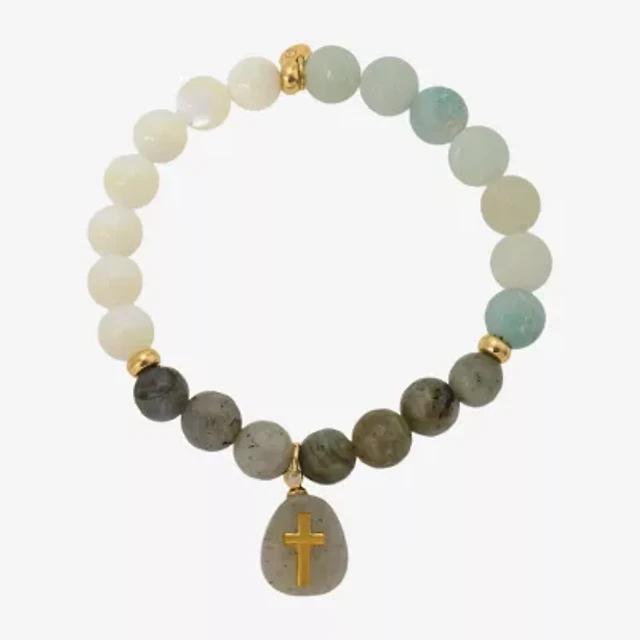 Footnotes Charm Beaded Womens White Moonstone 10K Gold Over Brass Cross Bolo Bracelet