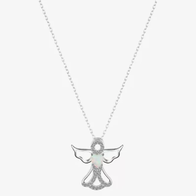 Footnotes Womens Cubic Zirconia Sterling Silver Angel 16 Inch Pendant Necklace
