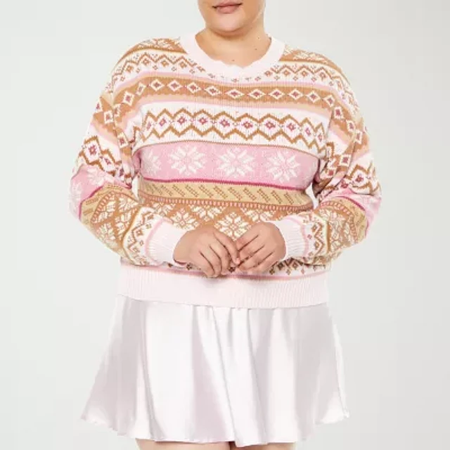 Forever 21 Juniors Plus Fairisle Womens Crew Neck Long Sleeve Holiday Pullover Sweater