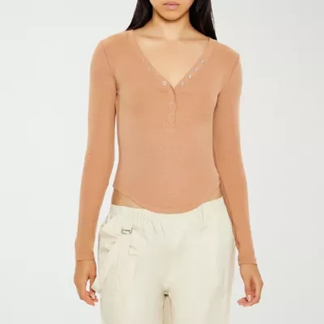 Forever 21 Juniors Womens V Neck Long Sleeve Henley Shirt