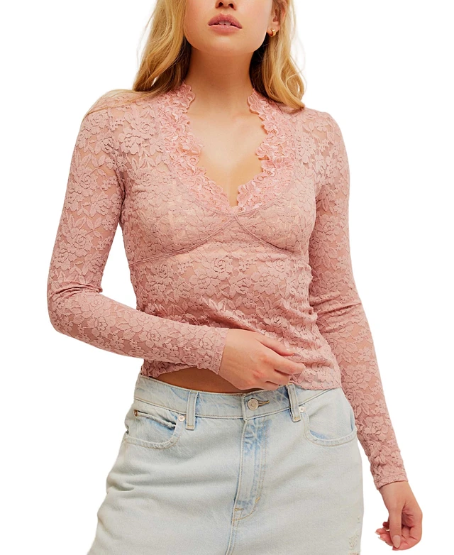 Free People Women's All Day Lace Long Sleeve Top