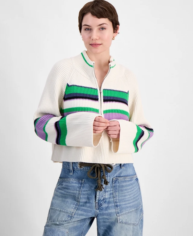 Free People Women's Greta Striped Half-Zip Sweater