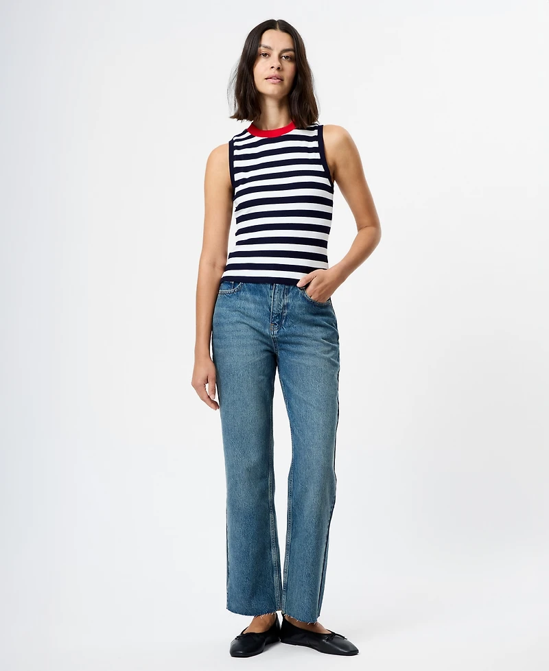 Display a timeless striped pattern with this sleeveless top from French Connection. It has a round neck for a clean look and an easy pull-on design for a comfortable dressing experience.