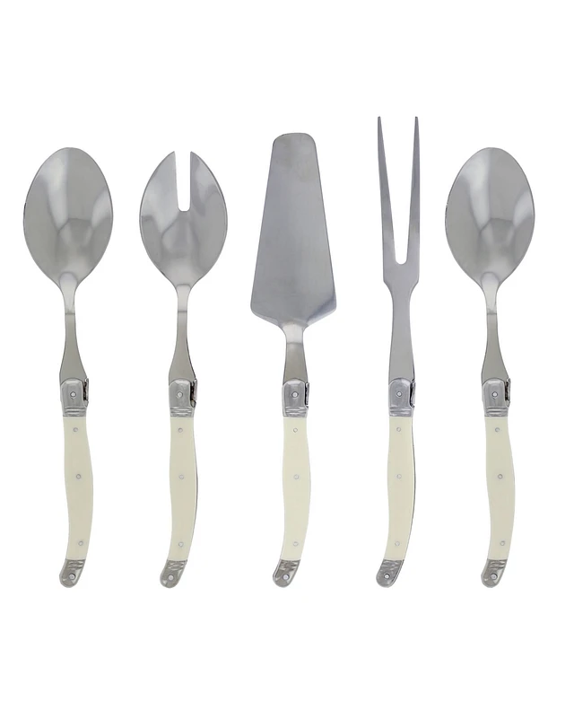 French Home 5-Piece Laguiole Cheese Knife, Fork, and Slicer Set with Faux Ivory Handles