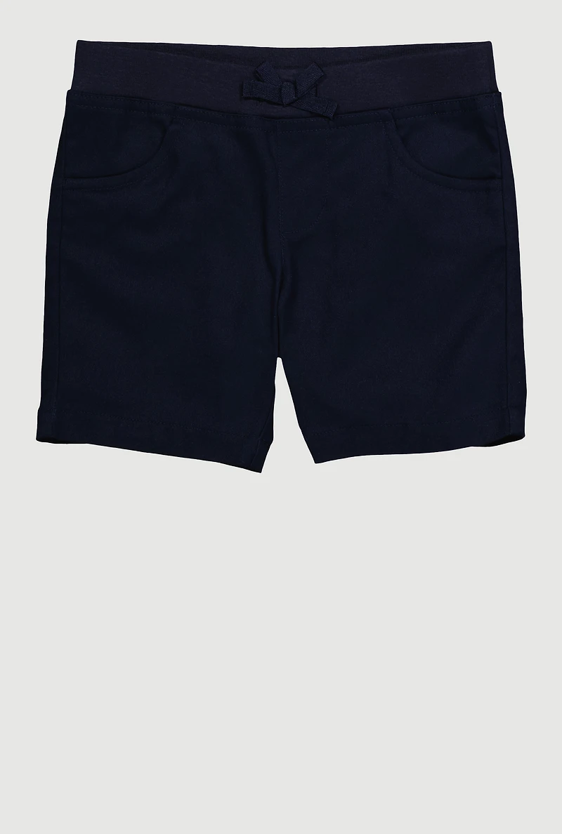 Get your little one ready for back to school with the French Toast Girls 4-6x Uniform Knit Shorts. Designed for comfort and style, these mid-rise shorts feature a clean solid look perfect for any school day. Made with sustainable materials, they offer an easy, eco-friendly choice for busy families. The faux drawstring adds a cute detail without the fuss, making these shorts a practical and adorable addition to any school uniform collection.