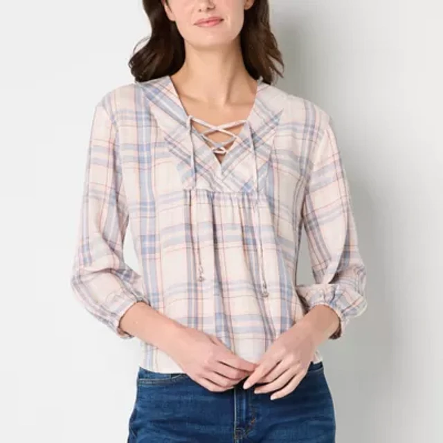 Frye and Co. Plaid Womens Split Tie Neck Long Sleeve Blouse