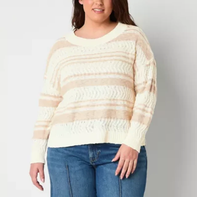 Frye and Co. Plus Womens Crew Neck Long Sleeve Striped Pullover Sweater