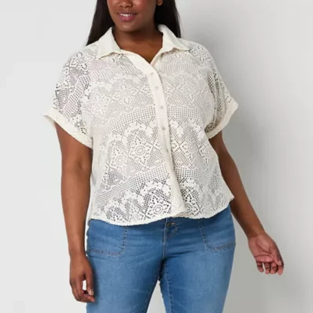 Frye and Co. Plus Womens Short Sleeve Regular Fit Button-Down Shirt