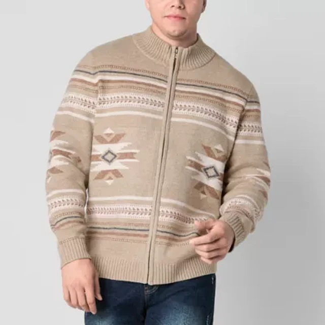 Frye and Co. Southwestern Zip Mock Big and Tall Mens Mock Neck Long Sleeve Pullover Sweater