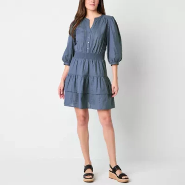 Frye and Co. Womens 3/4 Sleeve Embroidered Fit + Flare Dress