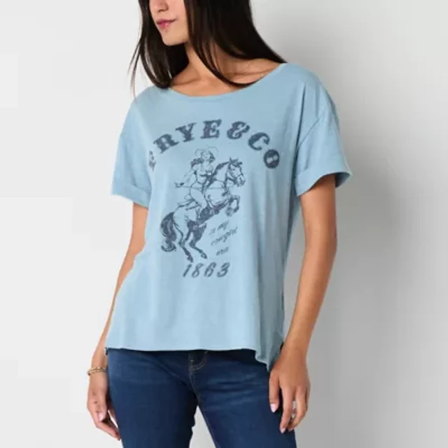 Frye and Co. Womens Crew Neck Short Sleeve Regular Fit Graphic T-Shirt