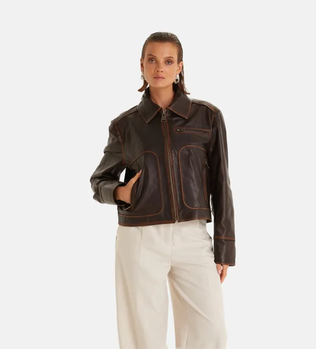 Furniq Uk Women's Genuine Leather Jacket, Black
