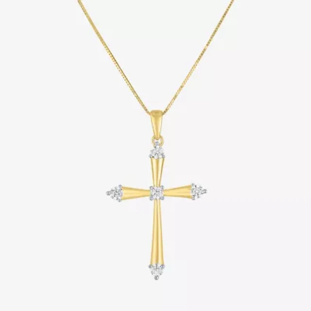 (G-H/ I1-I2) Womens 1/4 CT. T.W. Lab Grown White Diamond 10K Gold Cross 18 Inch Pendant Necklace
