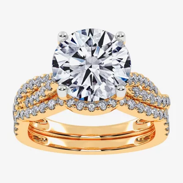 (G-H / Si1-Si2) Womens 5 1/2 CT. T.W. Lab Grown White Diamond 14K Gold Side Stone Engagement Ring