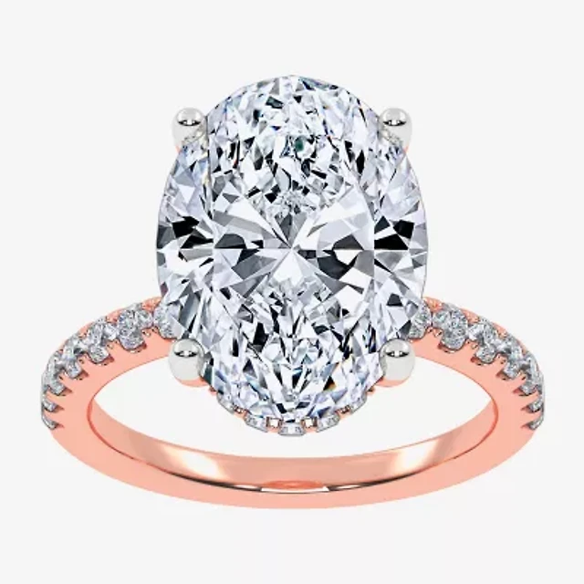 (G-H / Si1-Si2) Womens 5 1/2 CT. T.W. Lab Grown White Diamond 14K Gold Oval Side Stone Engagement Ring