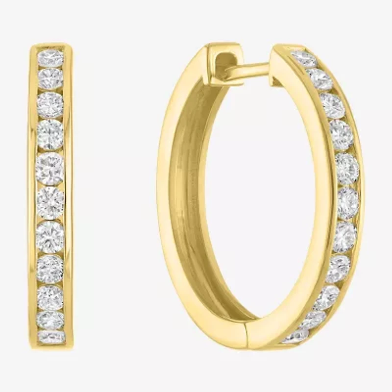 (G-H / Si2-I1) Womens 1 CT. T.W. Lab Grown White Diamond 14K Gold Over Brass 21.4mm Hoop Earrings