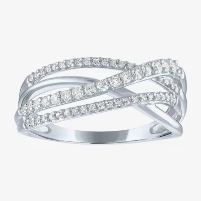 (G-H / Si2-I1) Womens 1/2 CT. T.W. Lab Grown White Diamond Sterling Silver Crossover Cocktail Ring