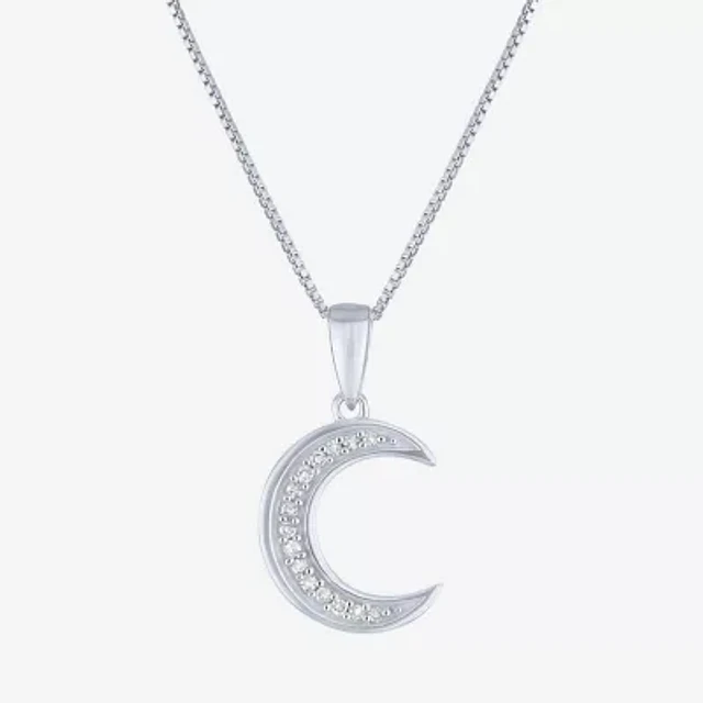 (G-H/I1-I2) Womens Diamond Accent Lab Grown White Diamond 10K Gold Moon Pendant Necklaces