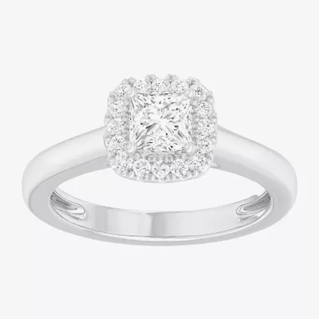 G-H / Si1-Si2) Womens 1/ CT. T.W. Lab Grown White Diamond 14K Gold Side Stone Halo Engagement Ring
