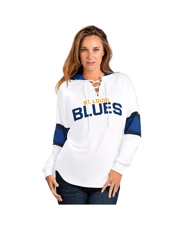 G-iii 4Her by Carl Banks Women's White St. Louis Blues Goal Zone Long Sleeve Lace-Up Hoodie T-Shirt