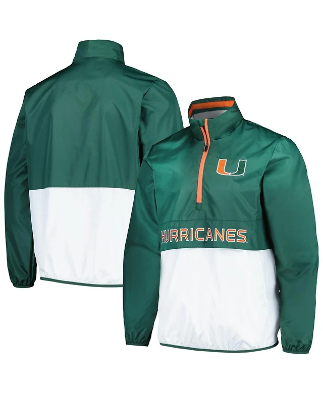 G-iii Sports by Carl Banks Men's Green Miami Hurricanes Cornerman Half-Zip Top