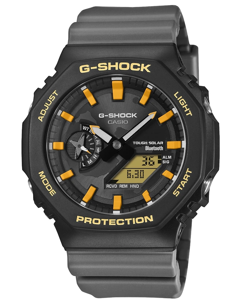 Embrace durable innovation with this G-Shock limited-edition watch, featuring Tough Solar power and Bluetooth connectivity. The black and orange resin case offers shock resistance and a bold look.