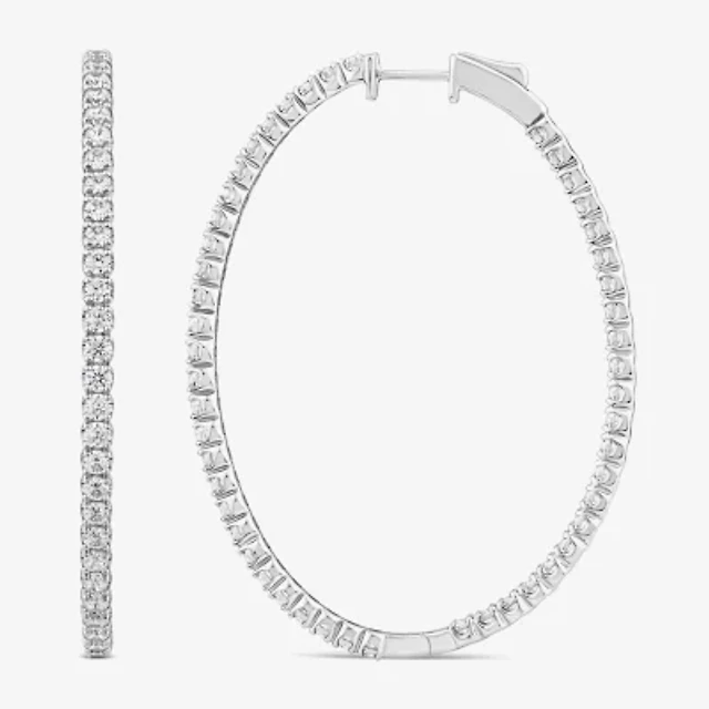 (H-I / I1) Womens 3/4 CT. T.W. Lab Grown White Diamond 10K White Gold 35mm Hoop Earrings