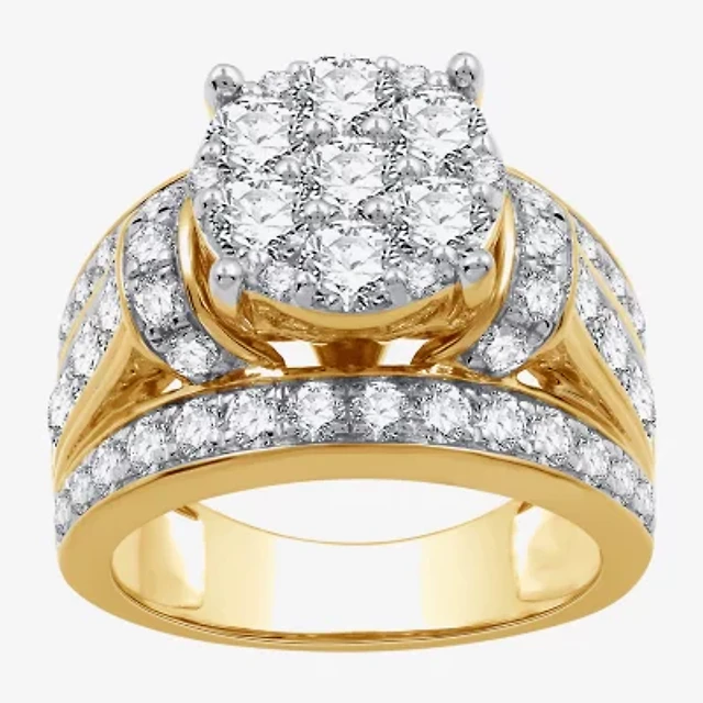 (G / Si1-Si2) Womens 3 CT. T.W. Lab Grown White Diamond 10K Gold Round Side Stone Engagement Ring